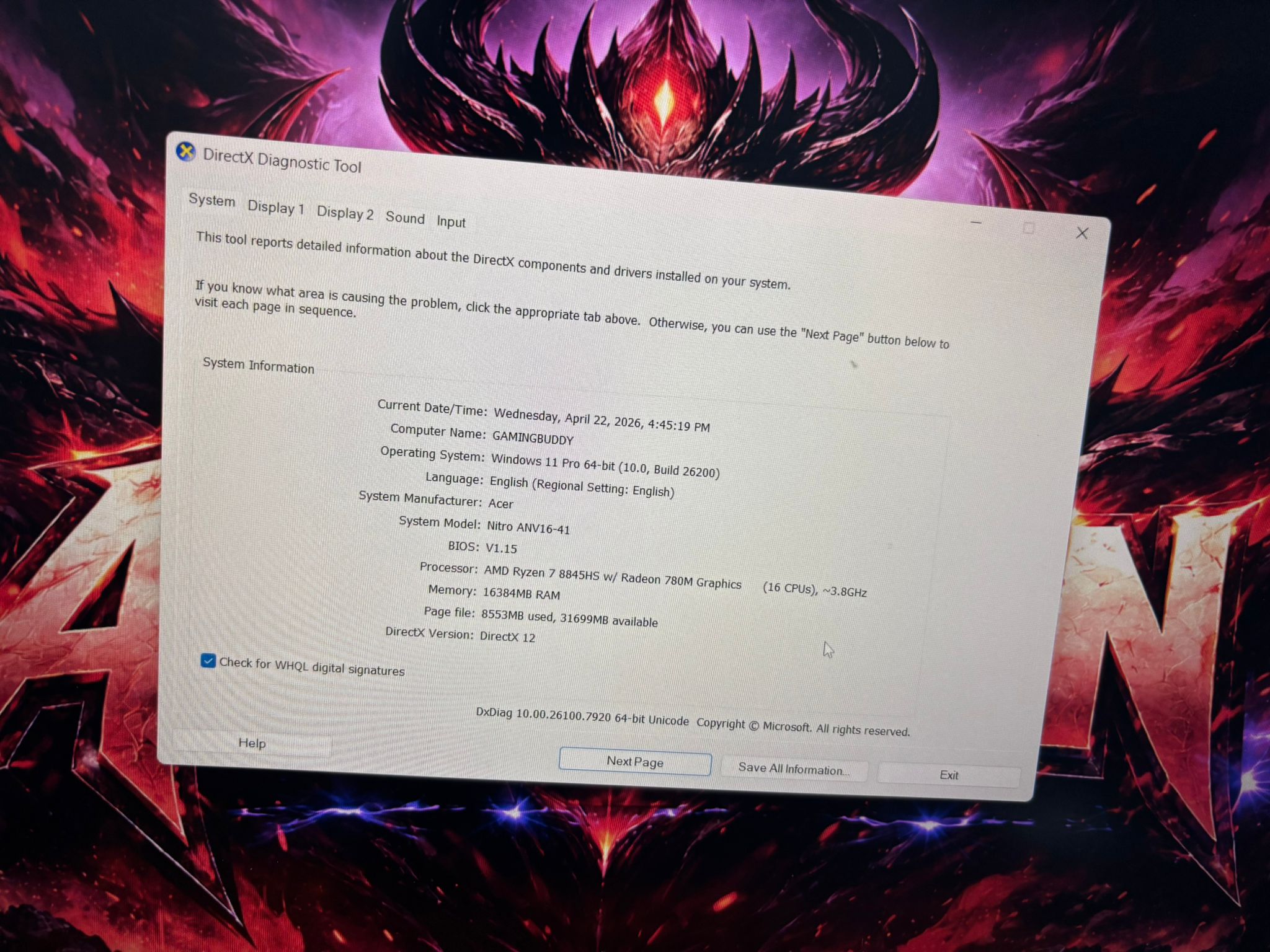 | Brand | Acer Nitro V16 |