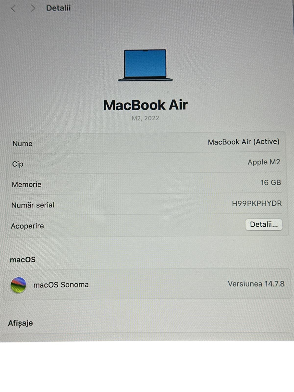 | Model | MACBOOK AIR M2 2022 |